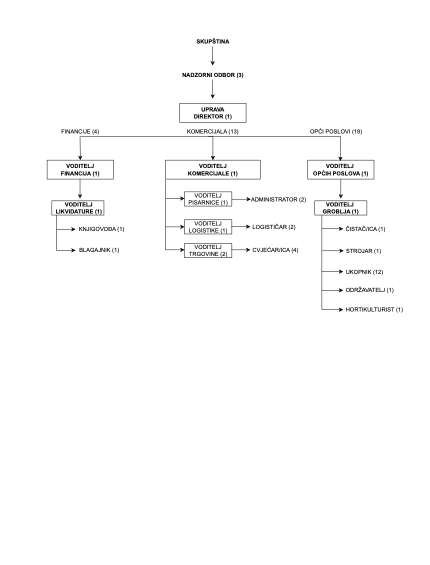 rada i uvjetima rada, u Društvu se ustrojavaju sljedeće organizacijske